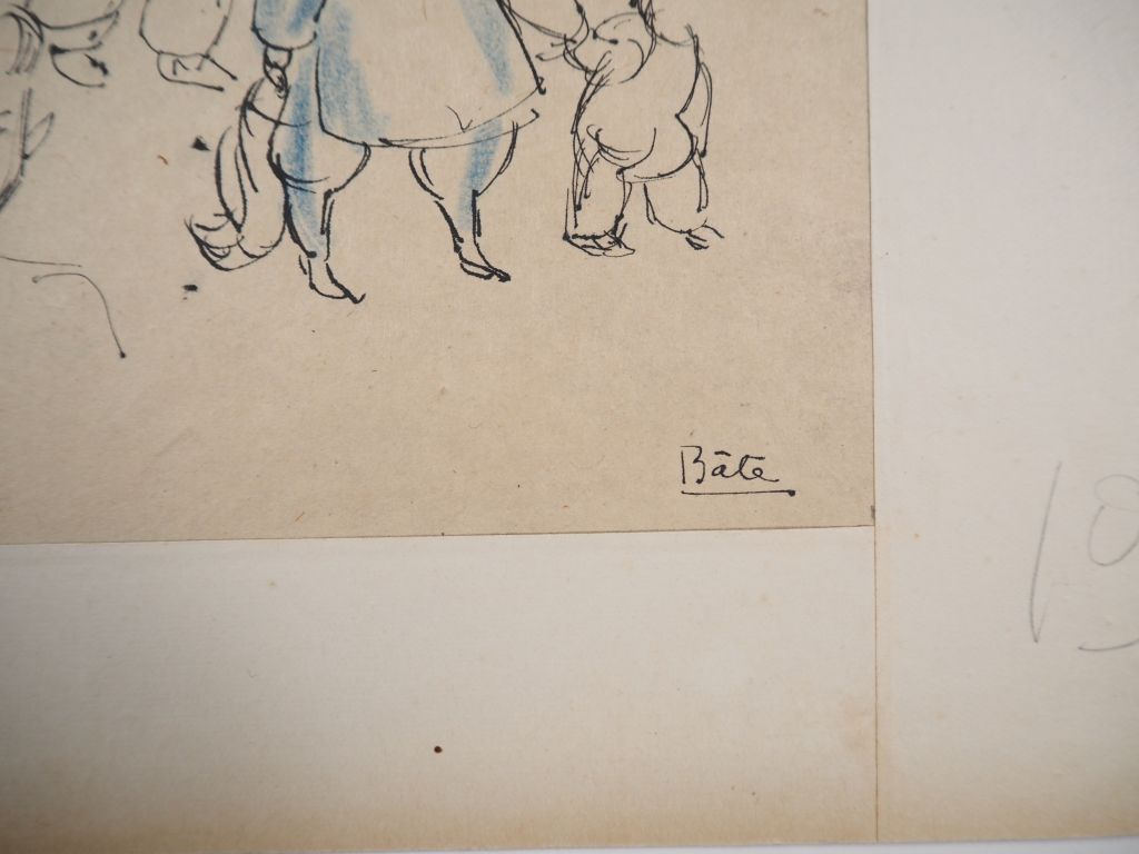 Louis Robert BATE (1898-1948, grand prix de l'Indochine en 1938). "Etude de personnages, Chine 1940". Encre et couleurs sur papier. Dim. 22,5 x 30,5 cm.