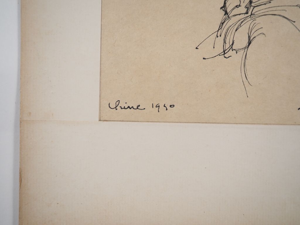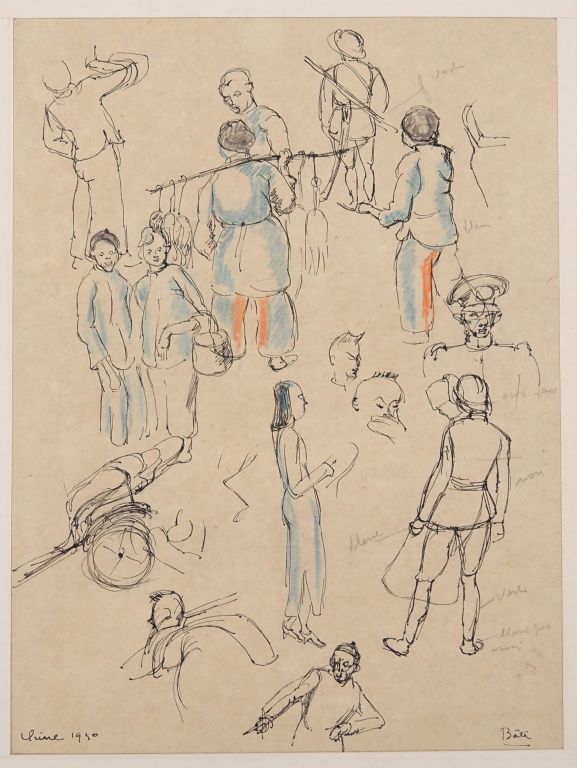 Louis Robert BATE (1898-1948, grand prix de l'Indochine en 1938). "Etude de personnages chinois". Encre et couleurs sur papier signée en bas à droite, située et datée 1940 en bas à gauche. Dim. 30 x 22,5 cm.