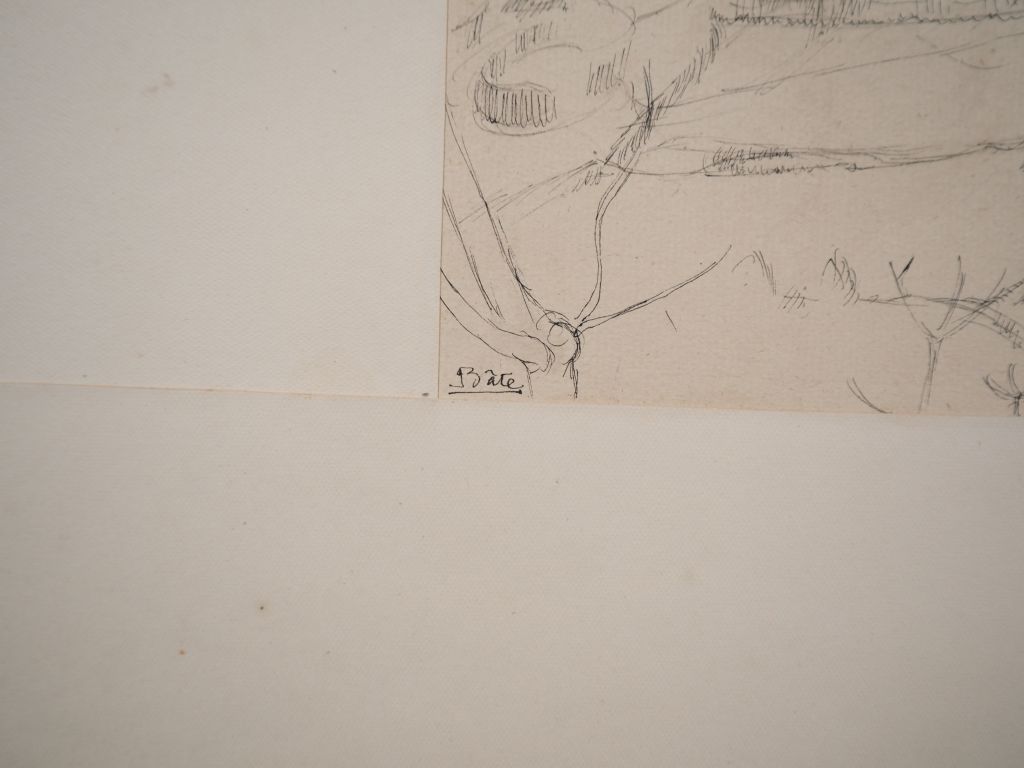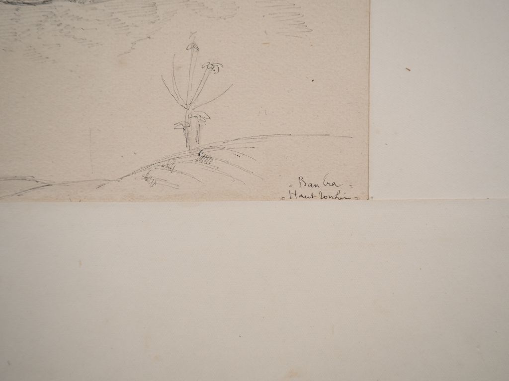 Louis Robert BATE (1898-1948, grand prix de l'Indochine en 1938). "Paysage, Ban Cra Haut Tonkin". Encre sur papier signée en bas à gauche et située en bas à droite. Dim. 25,5 x 34,5 cm.