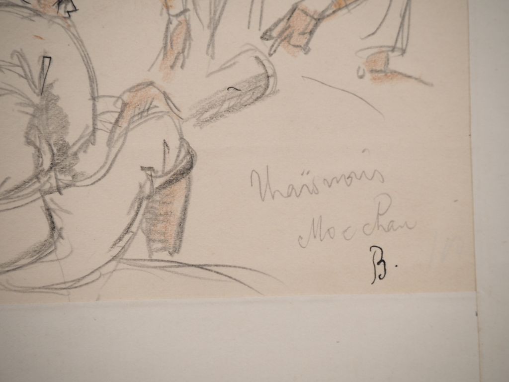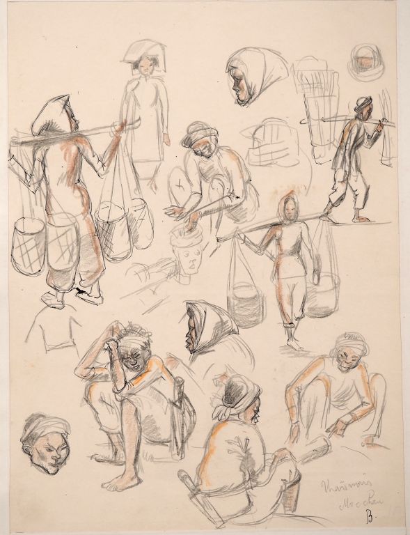 Louis Robert BATE (1898-1948, grand prix de l'Indochine en 1938). "Récolte du Maïs noir à Moc Chau". Dessin signé, situé et titré en bas à droite. Dim. 27,5 x 20,5 cm.