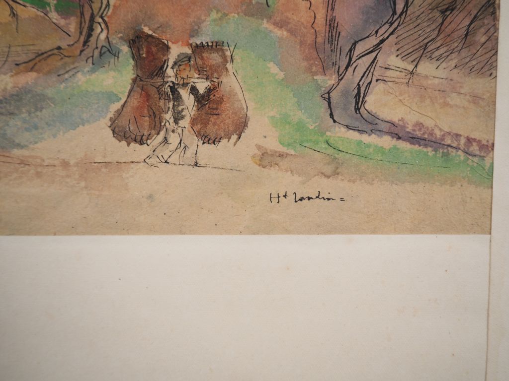 Louis Robert BATE (1898-1948, grand prix de l'Indochine en 1938). "Village du Haut Tonkin dans un paysage de rizières arboré". Encre et aquarelle sur papier signée en bas à gauche et située en bas à droite. Dim. 34 x 56 cm.
