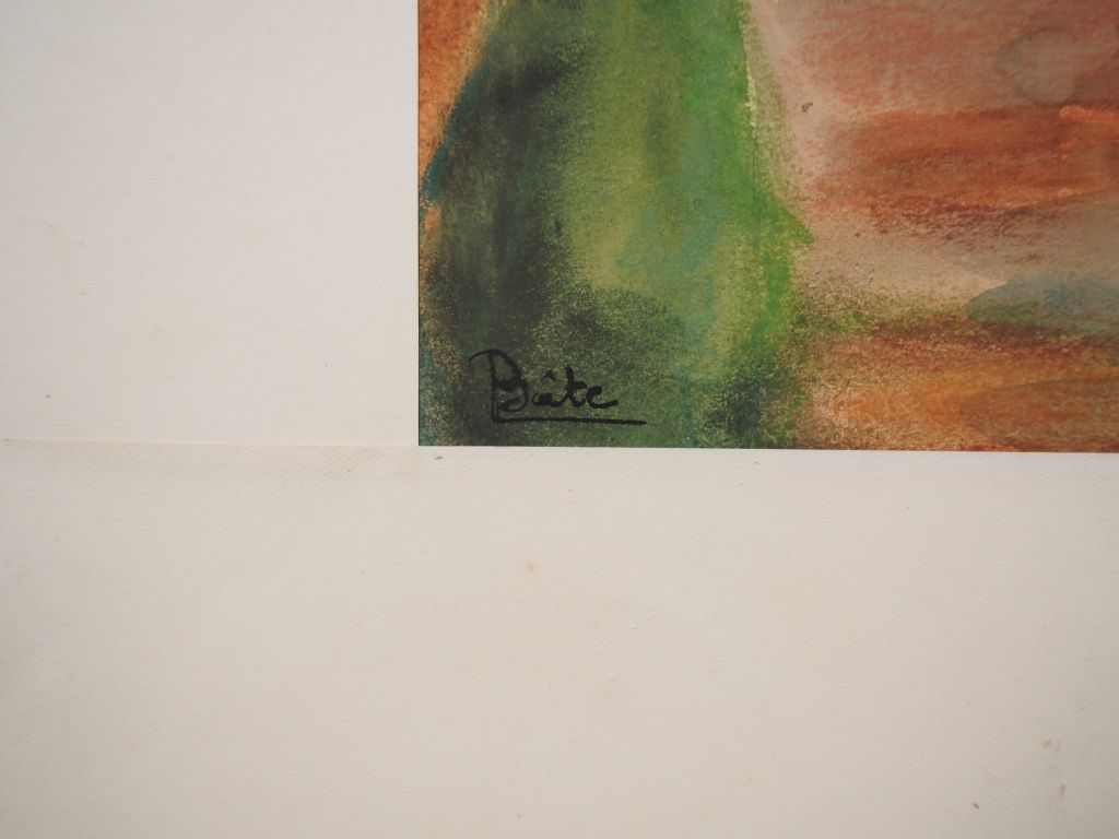 Louis Robert BATE (1898-1948, grand prix de l'Indochine en 1938). "Village et rizières en Asie du sud". Aquarelle signée en bas à gauche. Dim. 25 x 36 cm.