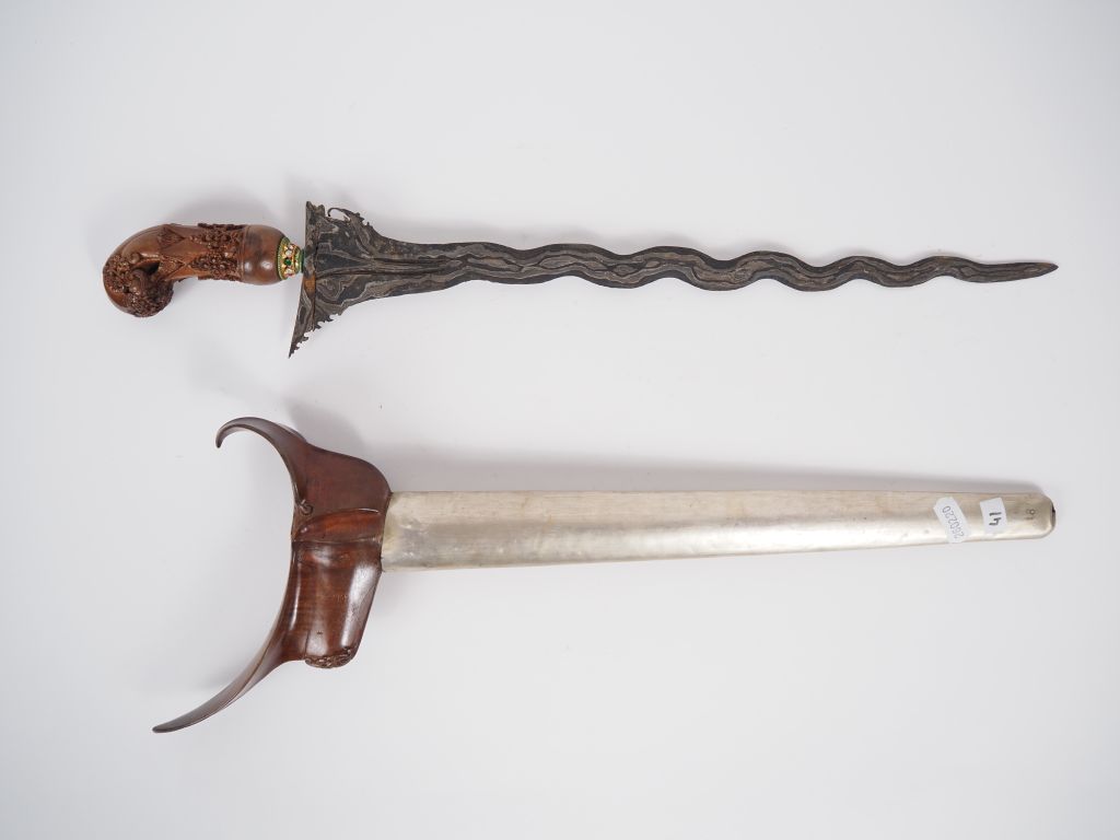 Malaisie, fin XIXe-début Xxe Poignard dit « kriss » la poignée et le warangka en bois L. 49 cm.