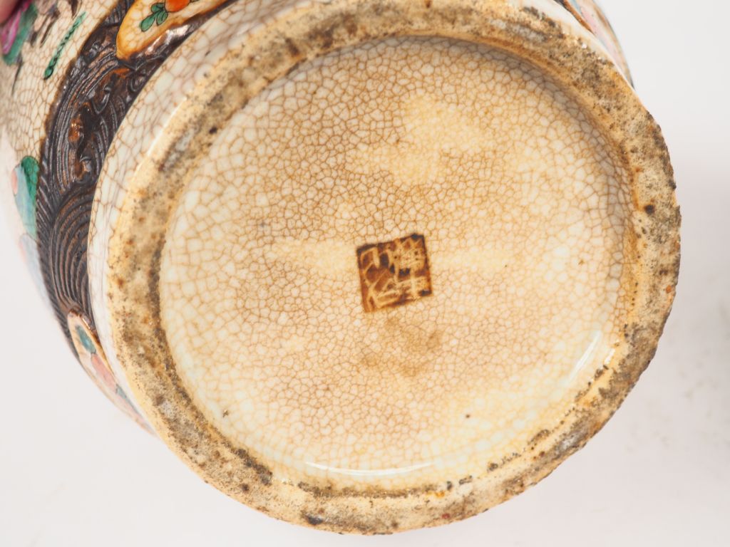 Nankin, vers 1920, Paire de vases de forme balustre en porcelaine de Nankin, à décor de guerriers. H.35 cm