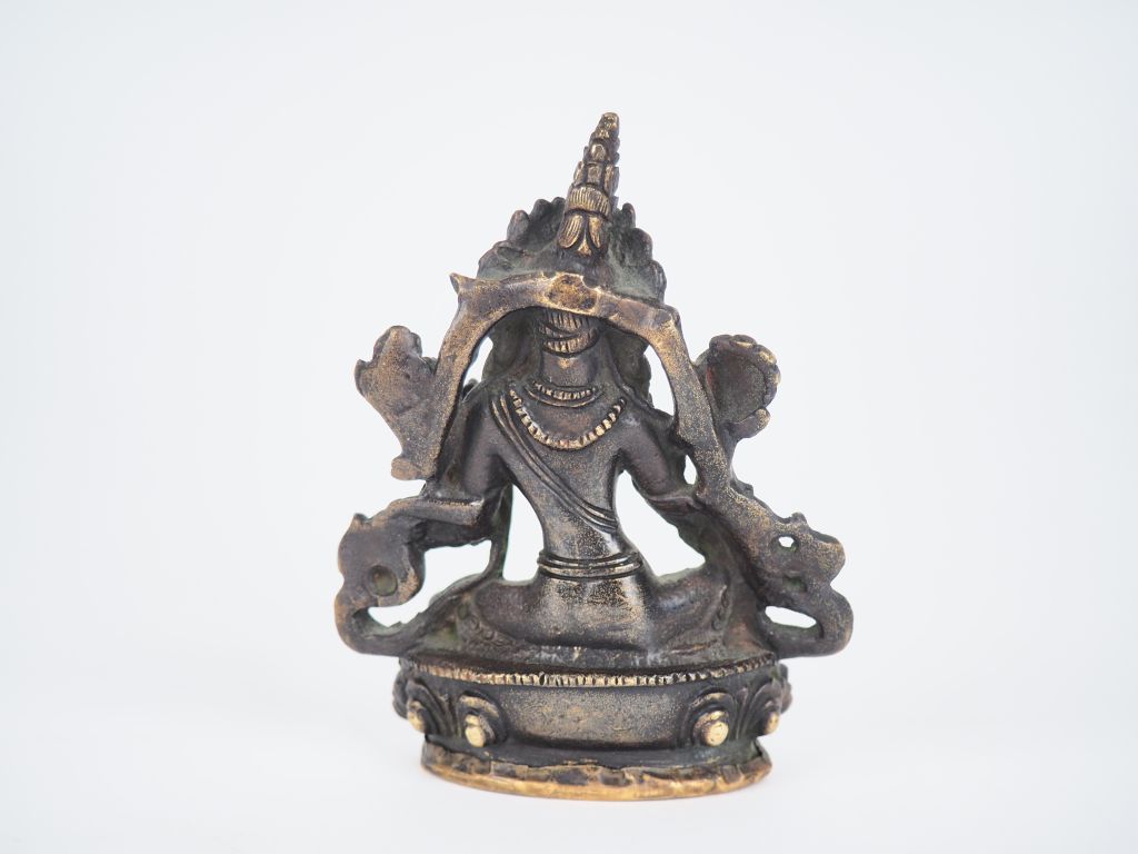 Népal, fin XXe siècle, Tara verte en bronze représentée assise sur un lotus en délassement royal en vitarka mudra. H. 11 cm