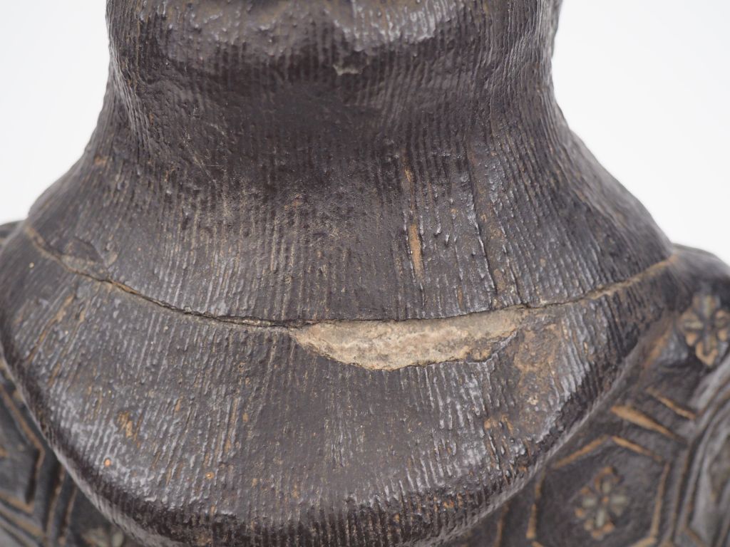 Okimono en terre cuite représentant un Samouraï Japon Xxème, Période Taisho. H. 43,5 cm. (petit accident au col).