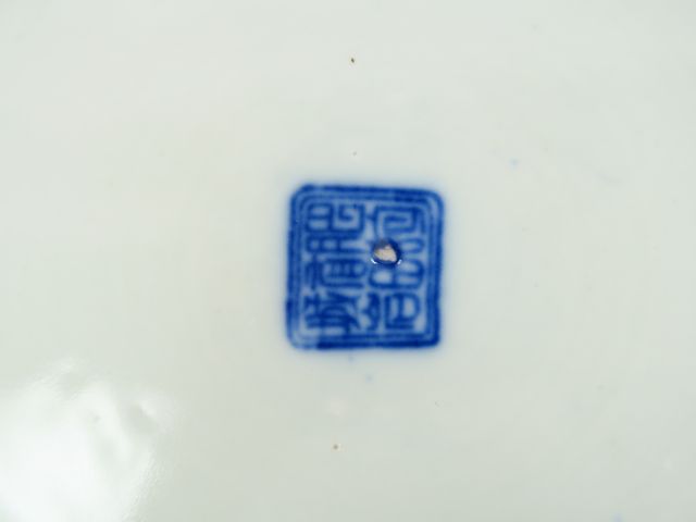 Paire de coupes en porcelaine blanc bleu à décor de dragons. Japon vers 1930. (petit manque) Diam. 25 cm