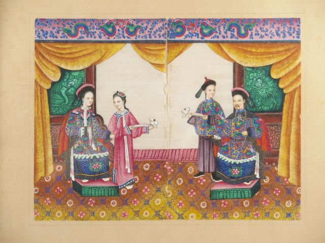 Paire de gouaches sur papier de riz. Canton fin XIXème. 32 x 41,5 cm (accidents)