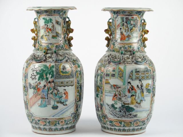 Lot de Paire de vases fin XIXème en porcelaine de Canton. H. 45 cm au prix de 400 à 500 € en vente aux enchères par l'hôtel des ventes Primardeco