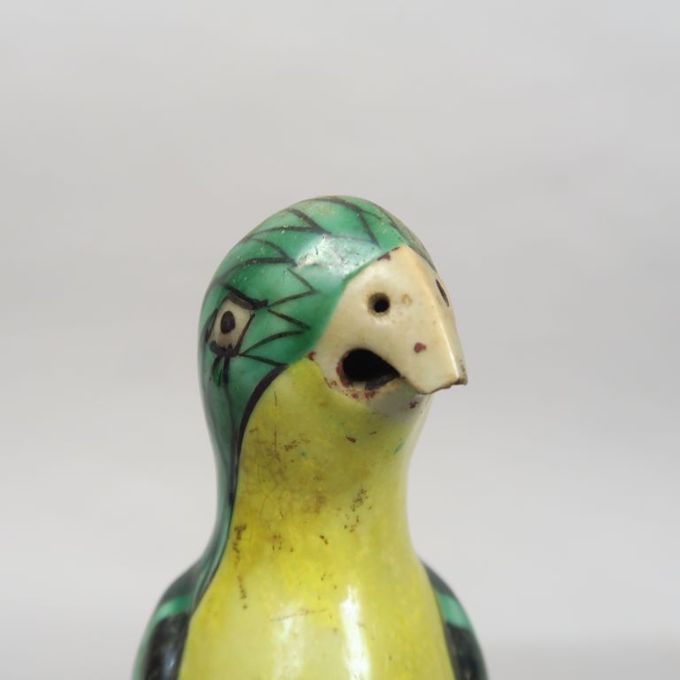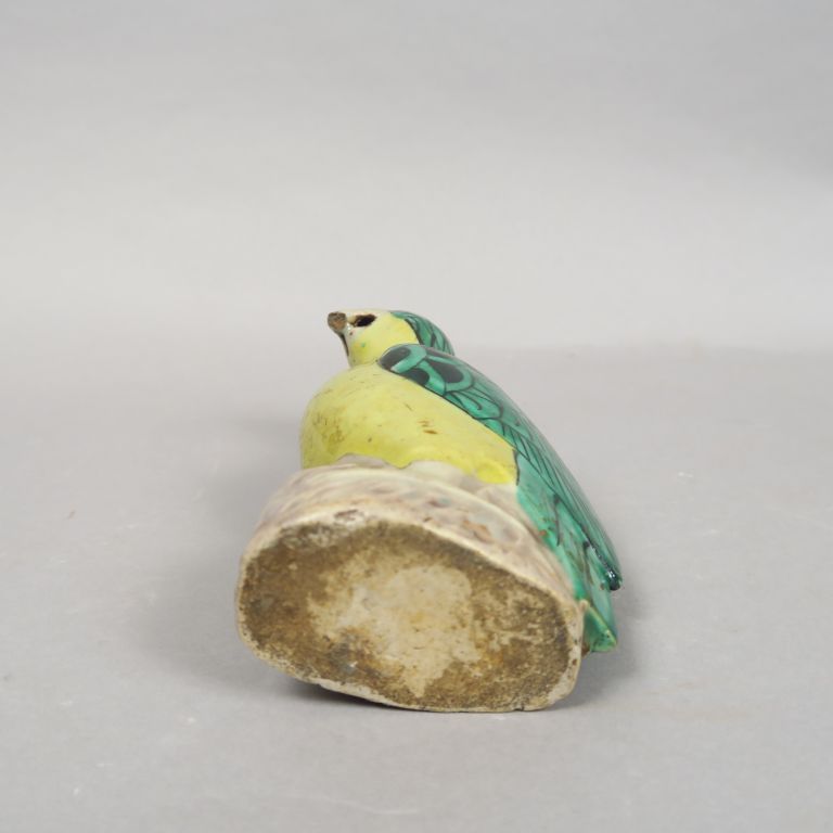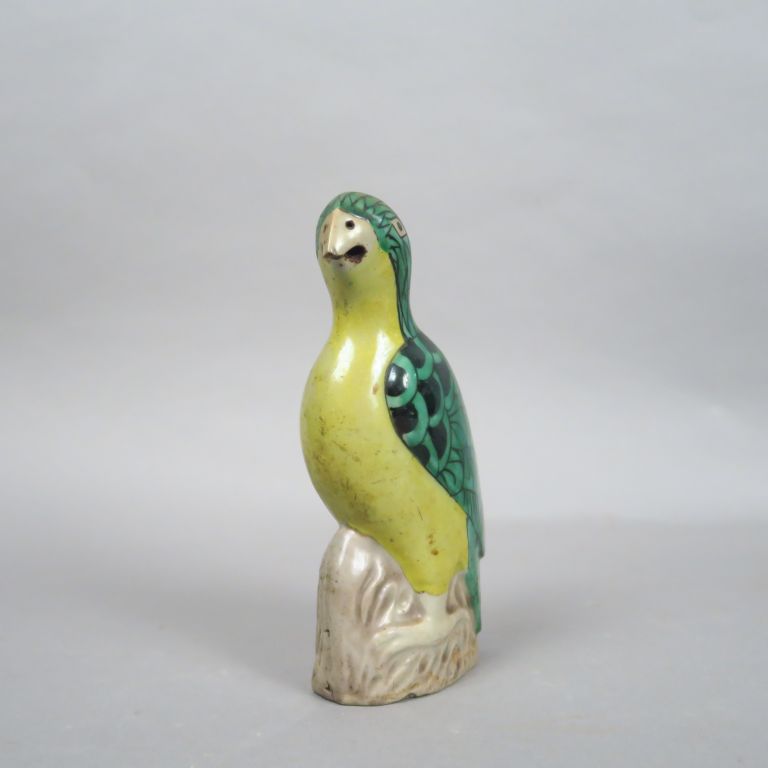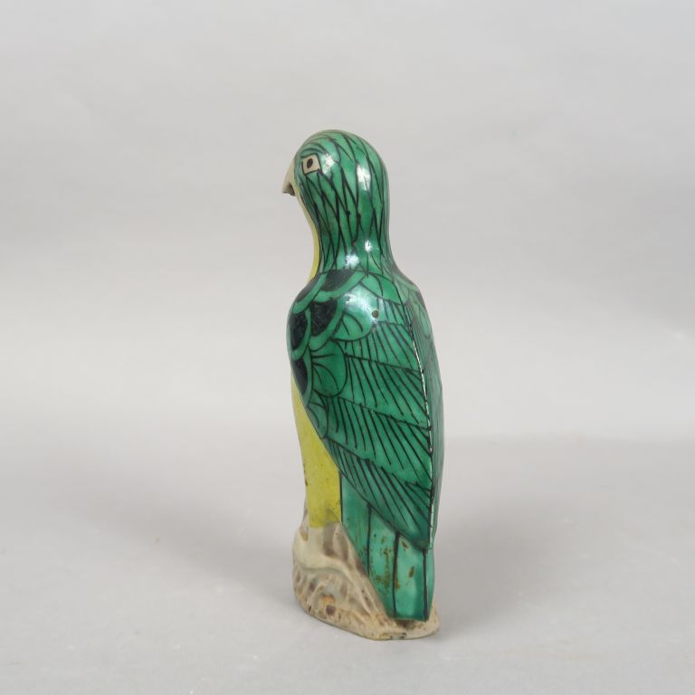 Perruche en porcelaine et émaux de style famille verte. Chine, XIXème siècle (Egrenure) H. 16 cm