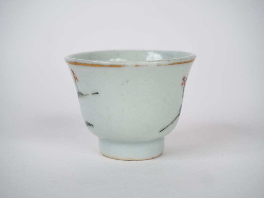 Petit sorbet en porcelaine famille rose, décor d'un jeune disciple présentant un éventail à un lettré Chine fin du XIXème Diam. 5 cm