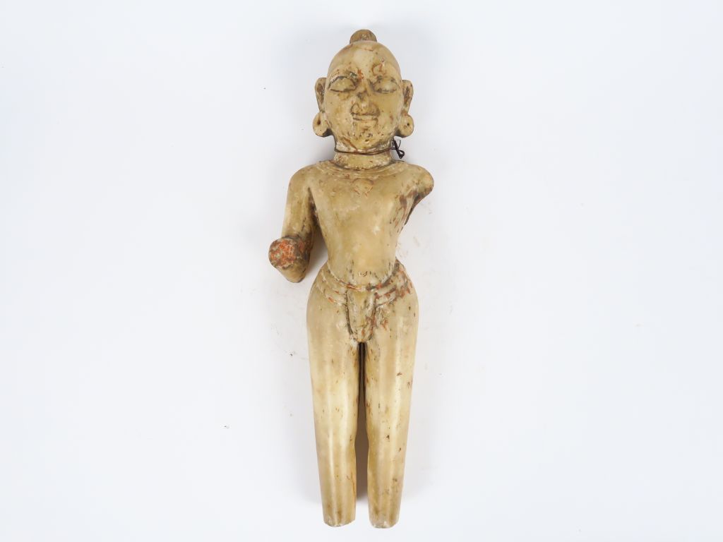 Statuette en albâtre anciennement polychrome représentant une divinité Jaim. Inde, XVIIIème. H. 53 cm