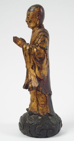 Statuette en bronze laqué et partiellement doré, représentant Lohan en méditation sur les nuages. Chine XVIIème siècle, fin de la période Ming. H. : 28 cm