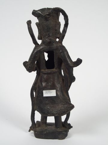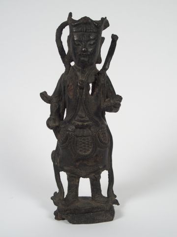Sujet en bronze à patine brune représentant une divinité du Tao . Chine, XVIIe-XVIIIe siècle. H. 26,5 cm (accidents)