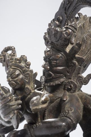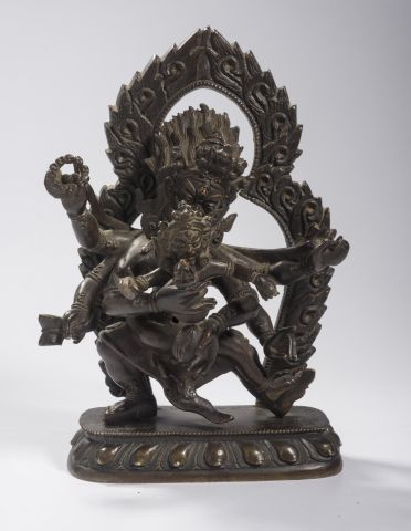 Sujet en bronze de patine brune, représentant Mahakala à six bras, deb...