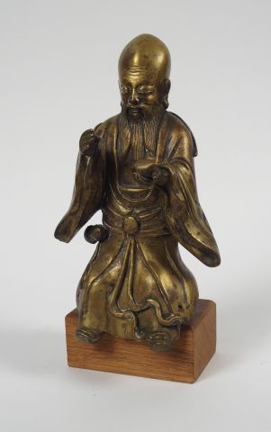 Sujet en bronze patiné, représentant Shoulao tenant la pêche de longévité. Chine, XIXe siècle. H. 24 cm