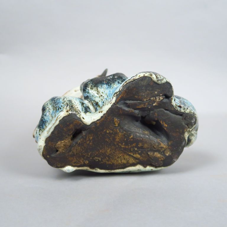 Sujet en céramique et émail bleu lavande représentant une colombe sur un rocher. Chine, XIXème siècle. H. 18,5 cm