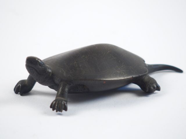 Sujet 'tortue' en bronze. Chine du Sud vers 1900 (traces d'argent, égrenures au niveau des pattes)