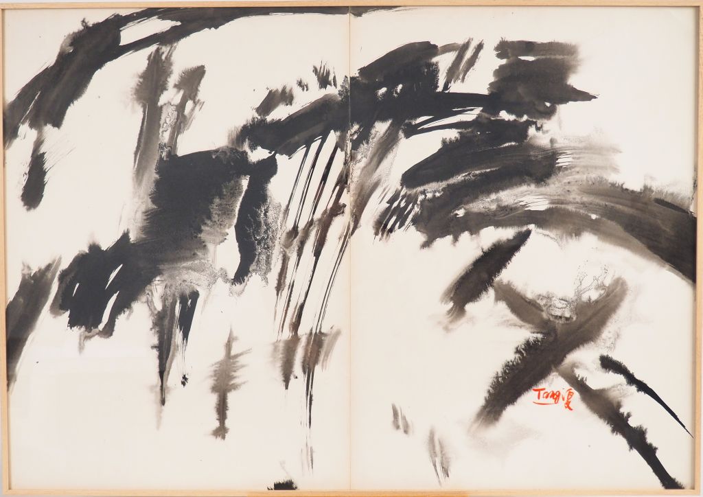 T'ANG Haywen. "composition abstraite" Encre sur papier, signée en bas à droite Dim. 69 x 100 cm