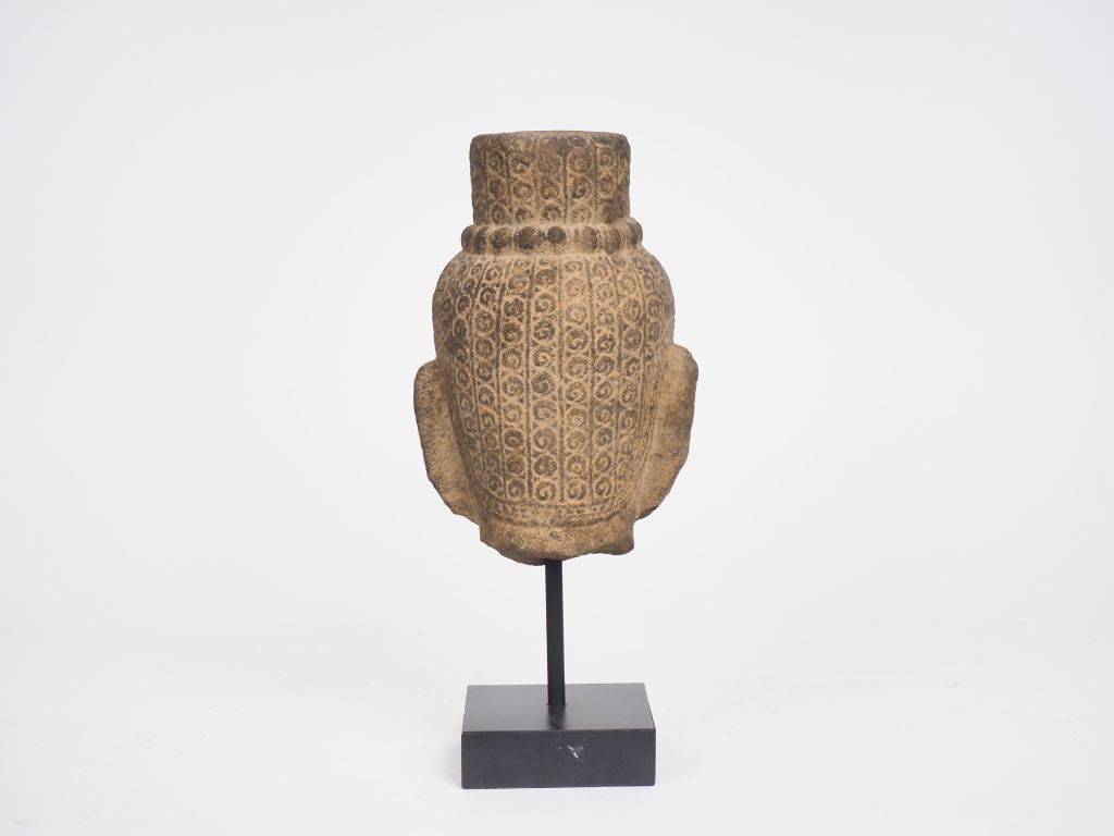 Tête en pierre de style Khmer. H. 18 cm. (sans le socle).