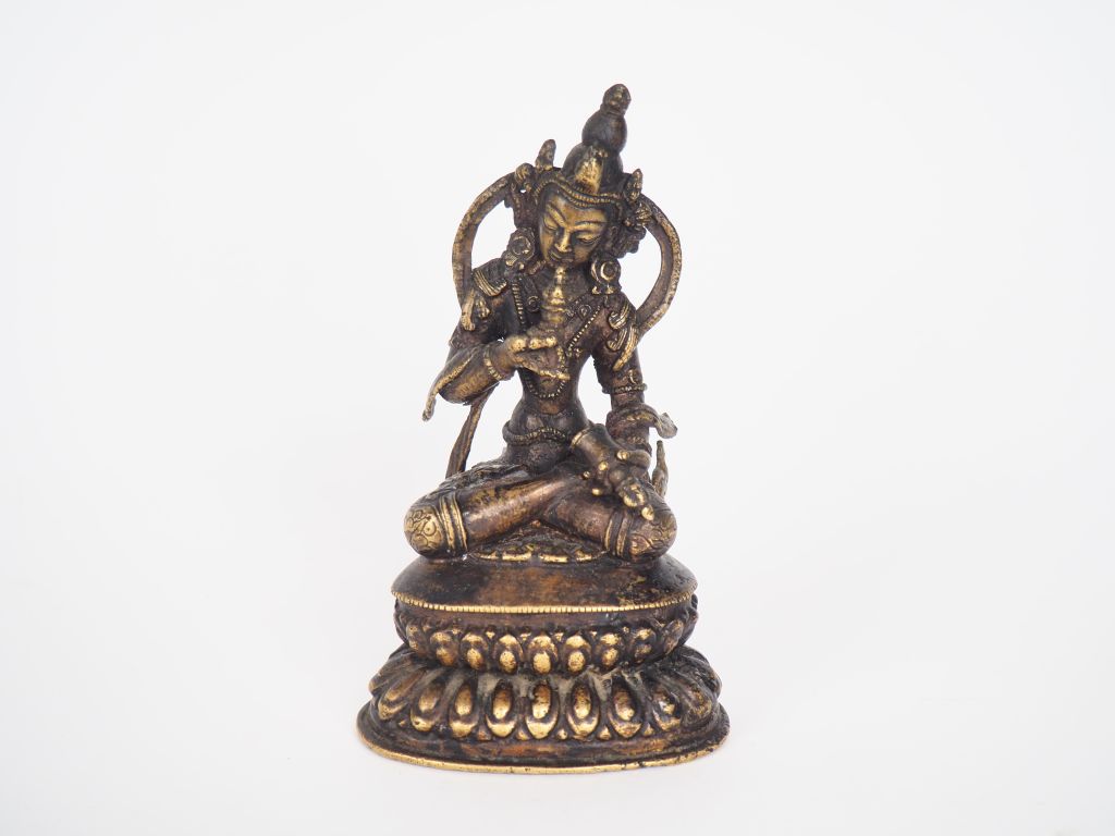 Tibet vers 1950 Boddhisattva représenté sur un double lotus en Samâdhi tenant la cloche gantha. H. 14 cm