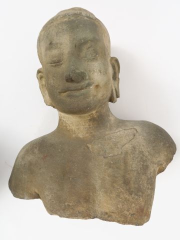 Torse de Bouddha en gré, le visage esquissant un léger sourire. Lopburi Khmer de Thaïlande, XIII - XIV ème siècle. H. 34 cm
