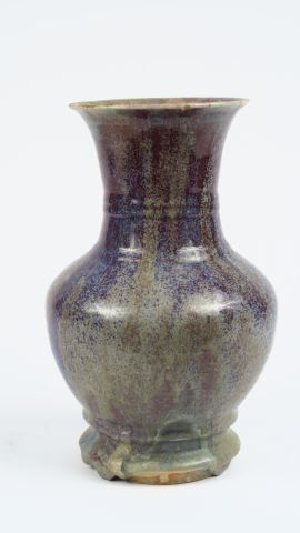 Vase à panse ovoïde et col évasé en grés porcelaineux émaillé rouge flammé bleu. Chine, début XIX ème siècle. H. 26,5 cm