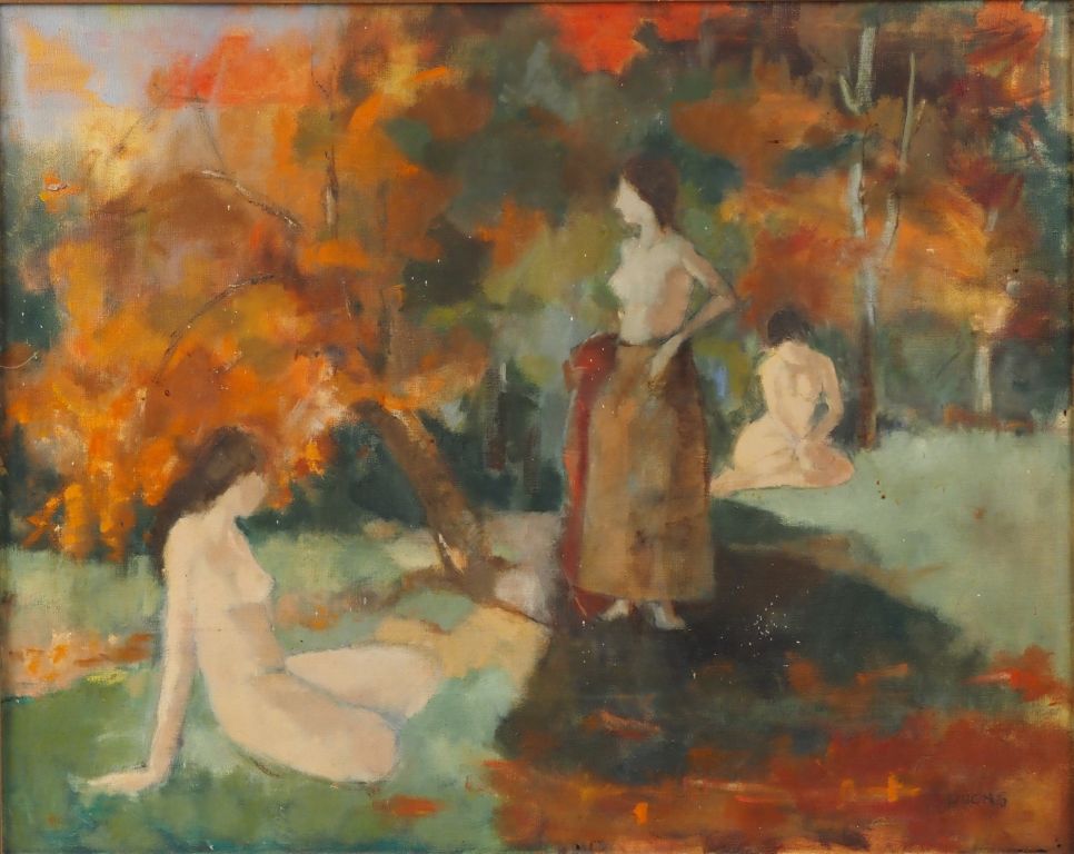 Vietnam, XXe siècle « Jeunes femmes à la toilette » Huile sur toile Porte une signature en bas à droite DUONG. Dim. 74 x 90 cm