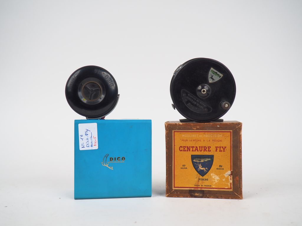 Lot de 2 moulinets de pêche à la mouche : - DICO H6 dans sa boite - CENTAURE au prix de 20 à 30 € en vente aux enchères par l'hôtel des ventes Primardeco