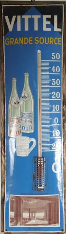 Lot de Baromètre sur une plaque émaillée publicitaire pour la marque Vittel. au prix de 400 à 600 € en vente aux enchères par l'hôtel des ventes Primardeco