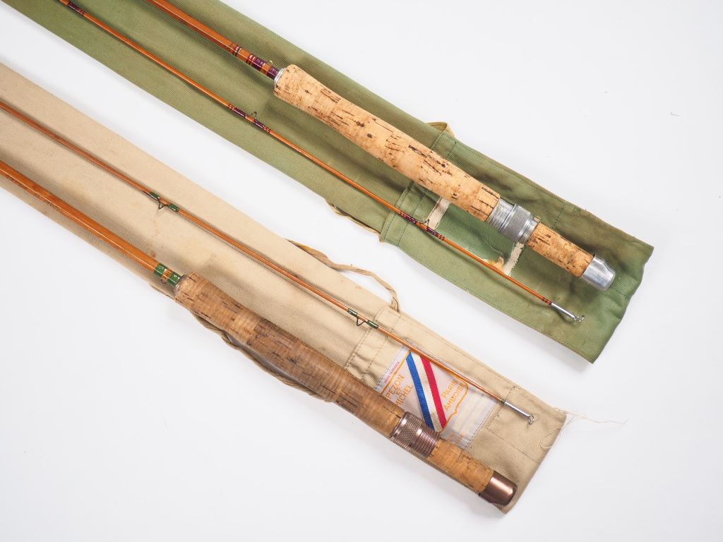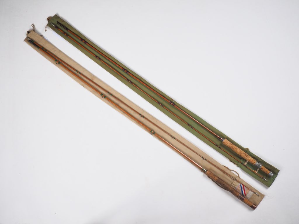 Lot de deux cannes à pêche : - PEZON ET MICHEL. Canne Parabolic Spéciale Normale (8') - PEZON ET MICHEL. Canne à mouche Parabolic Prima Normale (8'6)