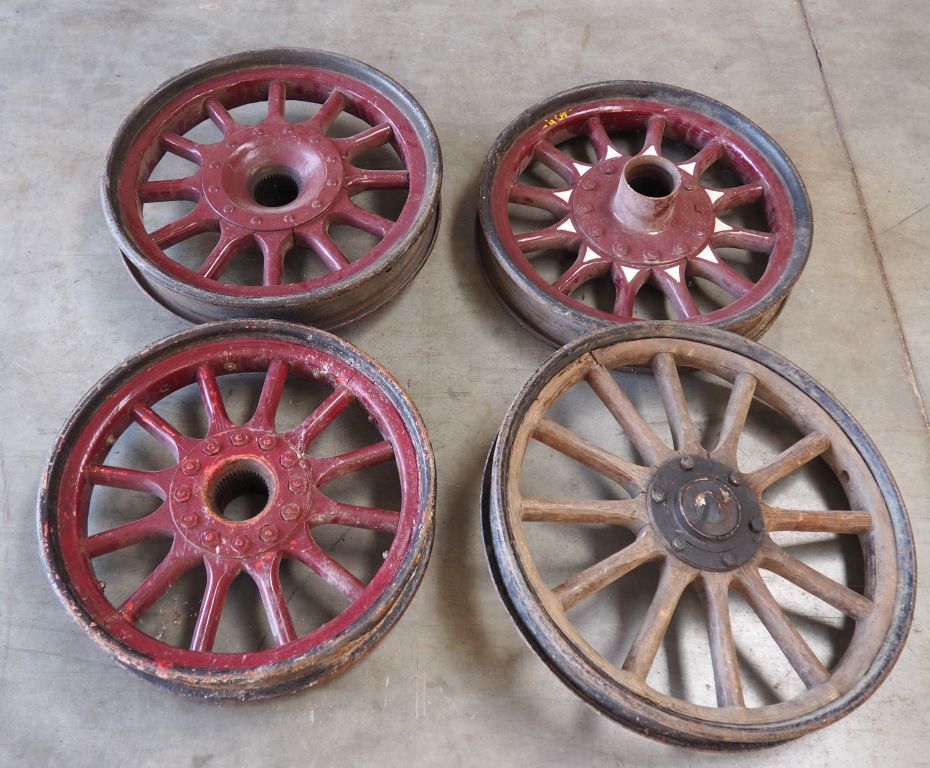 Lot de 4 roues en bois pour automobile. au prix de 30 à 50 € en vente aux enchères par l'hôtel des ventes Primardeco