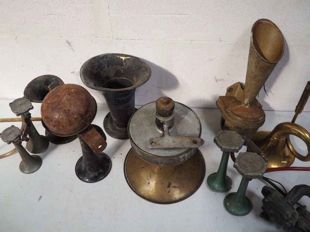 Lot de 9 différents klaxons pour automobile. au prix de 40 à 60 € en vente aux enchères par l'hôtel des ventes Primardeco