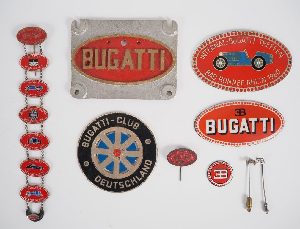Lot de Ensemble de plaques émaillées BUGATTI. H. de 2,5 à 18 cm. au prix de 60 à 80 € en vente aux enchères par l'hôtel des ventes Primardeco