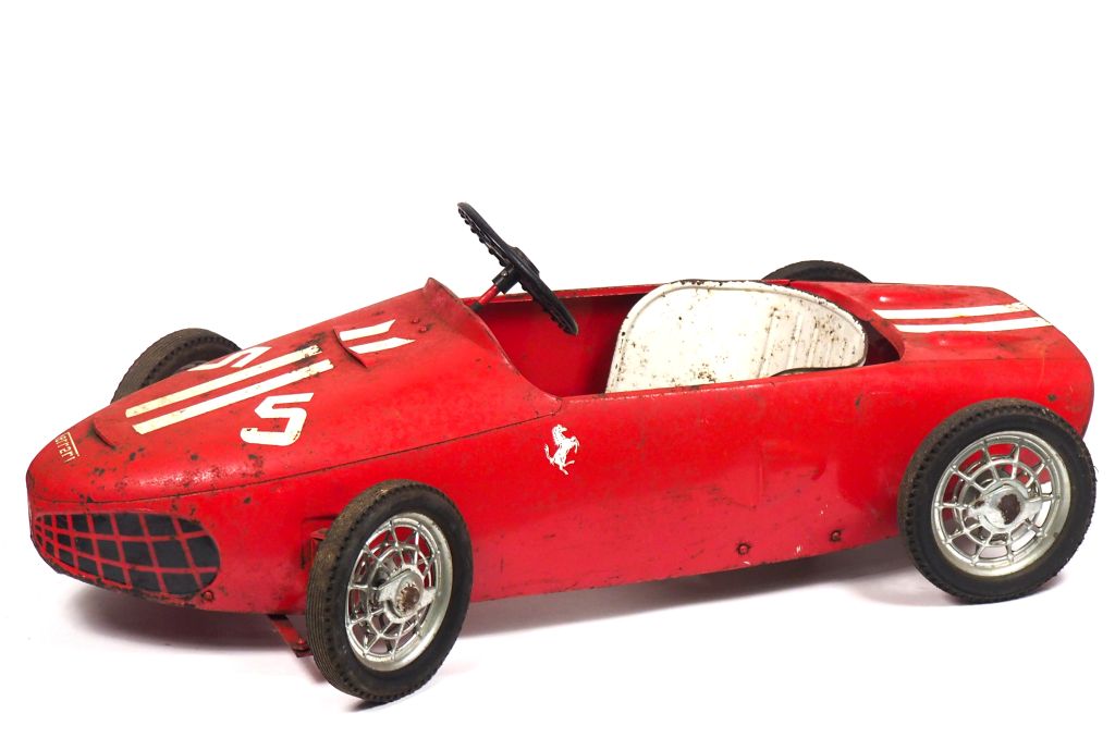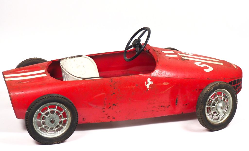 Lot de FERRARI. Voiture à pédales. Dim. 111 x 37 cm. au prix de 60 à 80 € en vente aux enchères par l'hôtel des ventes Primardeco