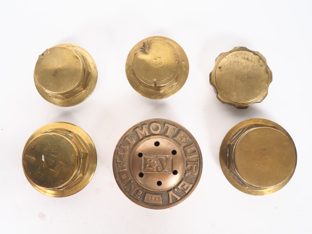 Lot de six différents bouchons de radiateur en bronze (accidents)