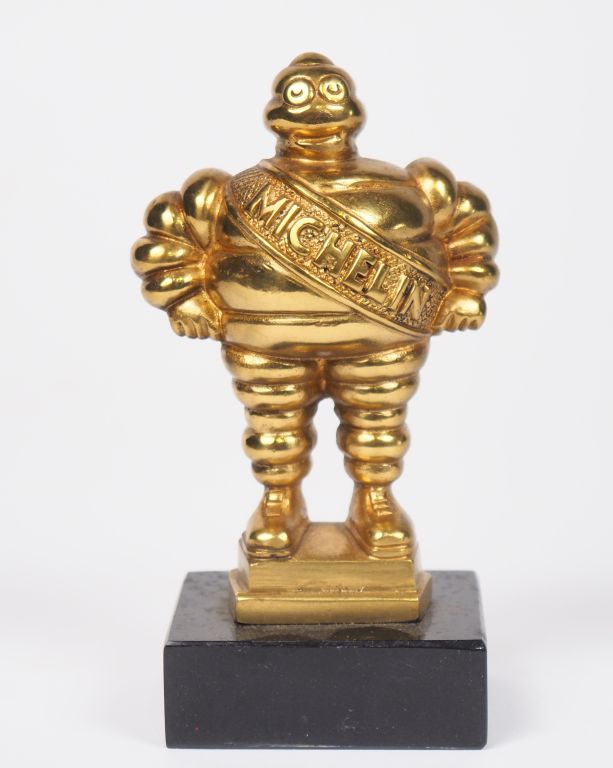 Lot de MICHELIN. Bibendum, sujet en bronze doré sur un socle en marbre noir. au prix de 20 à 30 € en vente aux enchères par l'hôtel des ventes Primardeco