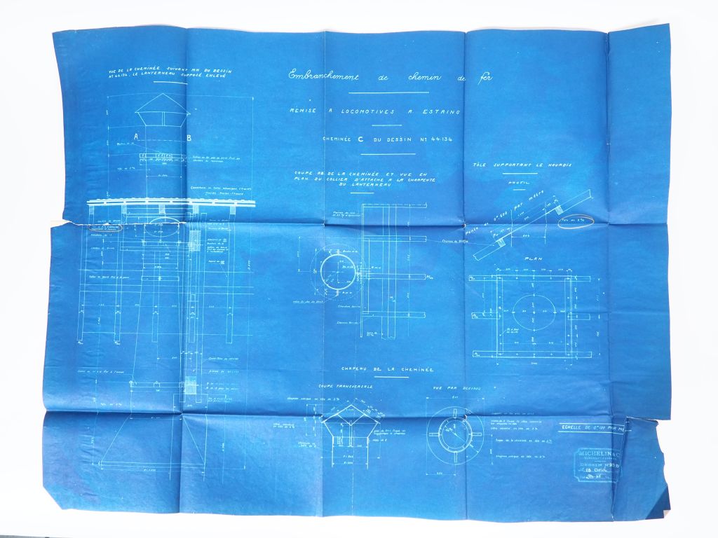 MICHELIN. Deux différents plans de remises à locomotives à Estaing (1921). (état d'usage).