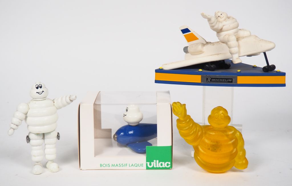 MICHELIN. Jouets Bibendum comprenant : - VILAC, un mini avion et un bibendum articulé - Un trophée avion - Une veilleuse