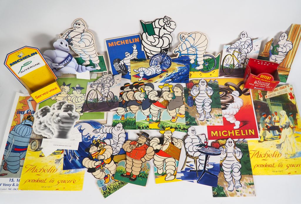 MICHELIN. Lot de cartonnages publicitaires Bibendums, affiches Michelin.