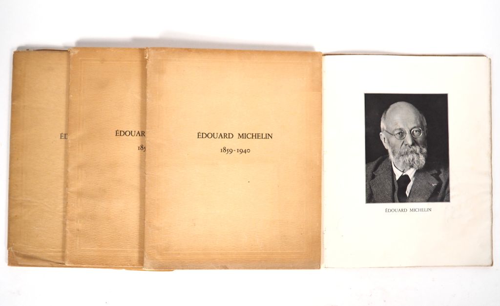 Lot de MICHELIN. Lot de quatre livres sur Edouard Michelin remis aux employés au prix de 5 à 10 € en vente aux enchères par l'hôtel des ventes Primardeco