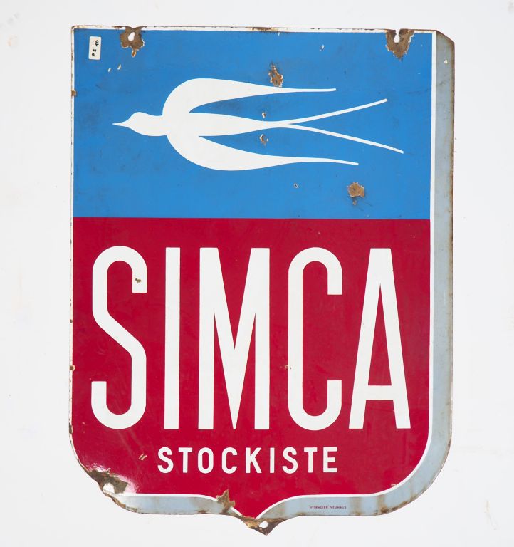 Lot de SIMCA STOCKISTE. Plaque émaillée. Dim. 86 x 65 cm. (accidents) au prix de 60 à 80 € en vente aux enchères par l'hôtel des ventes Primardeco