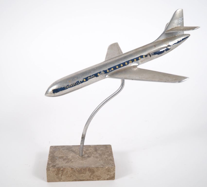 Lot de Avion bureau en métal chromé et marbre. "Caravelle" au prix de 40 à 50 € en vente aux enchères par l'hôtel des ventes Primardeco
