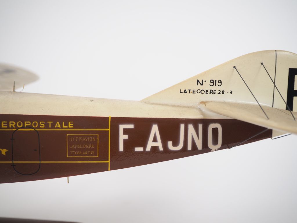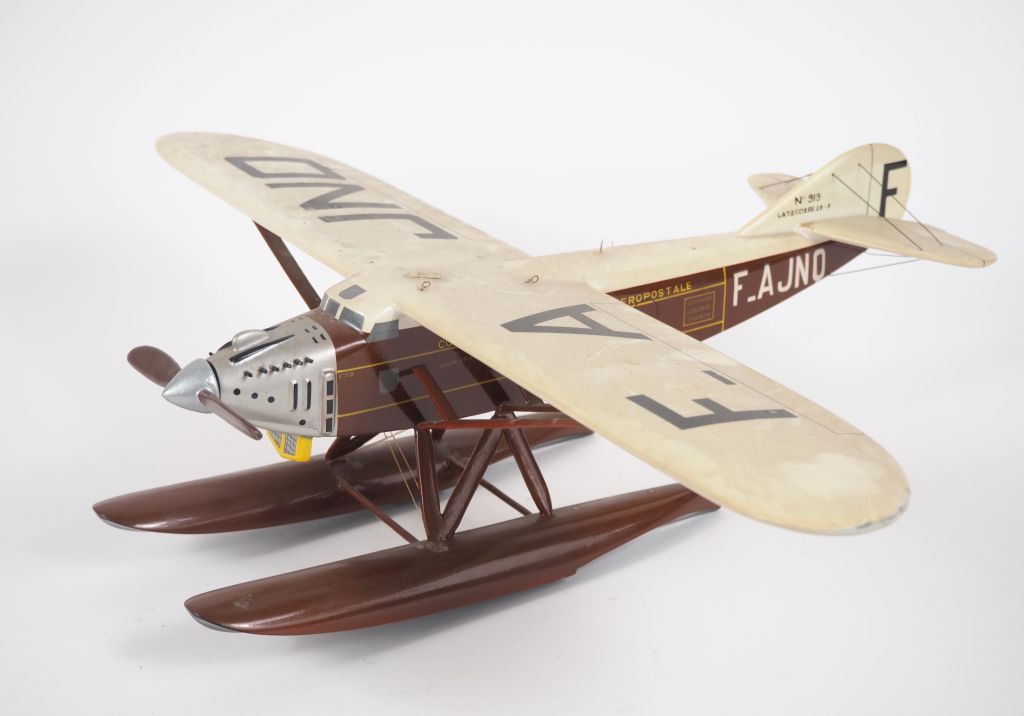 Hydravion Latécoère type 28-3. Avion bureau en bois polychrome. Dim. 14 x 39 x 50 cm (petits manques)