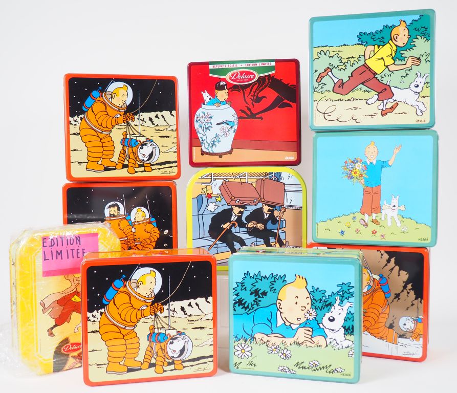 Lot de 10 boites métal diverses DELACRE TBE UNE MAUVAIS ETAT au prix de 40 à 50 € en vente aux enchères par l'hôtel des ventes Primardeco