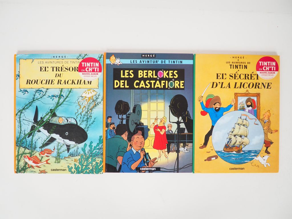 2 Albums en CHTI (Rackham et Secret licorne) + 1 album en Wallon (Castafiore) DEDICACE NEUF