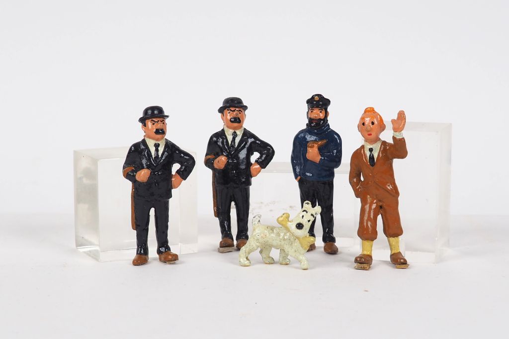 5 figurines en plomb origine inconnue (Tintin,Haddock,Dupont x2,Milou)