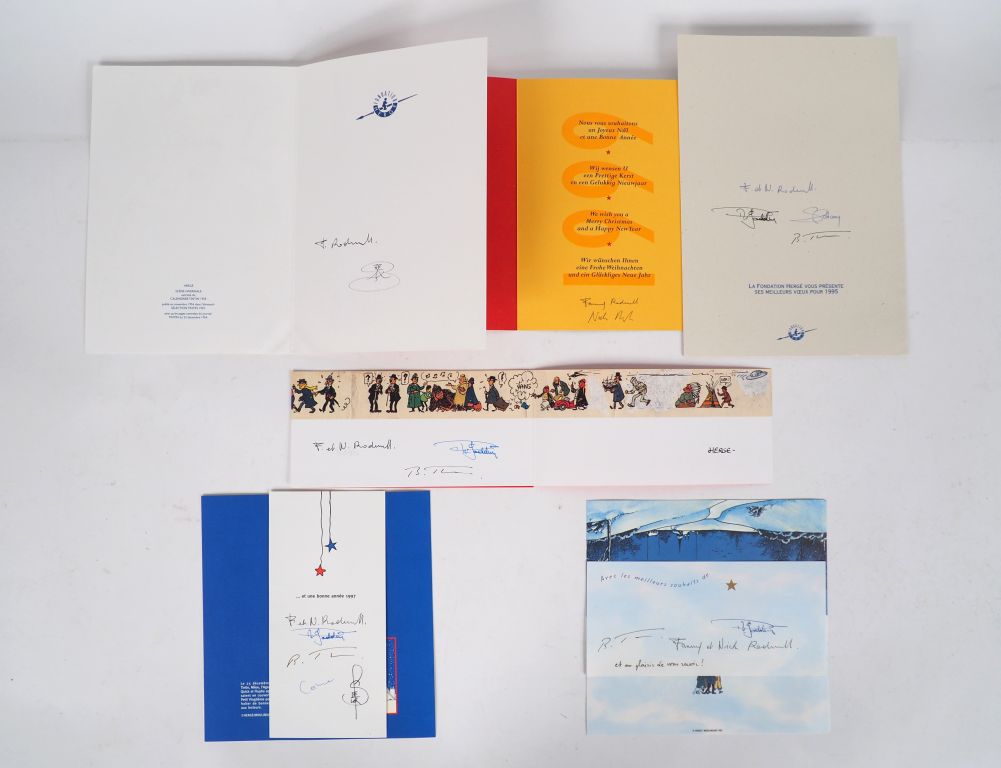 Ensemble de 6 cartes de vœux des années1994 (Signée Fanny), 1995 (signée Fanny et Nick,Sophie CHANG,bernard tordeur (secretaire général) 1996 (signée par Fanny et Rick et Tordeur), 1997 (signée Fanny et Nick,Sophie CHANG,bernard tordeur (secrétaire général), Goddin) , 1998 (signée Fanny et Nick,bernard tordeur (secrétaire général), Goddin), 1999 (signée Fanny et Rick)