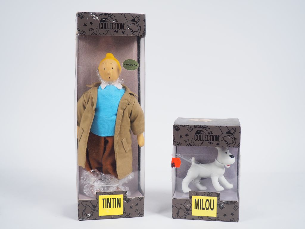 LOT 2 Poupées TINTIN (Reporter TBE) + MilouTBE Taille 25 cm, Boites frottées et abimées, Porcelaine et tissu 1994