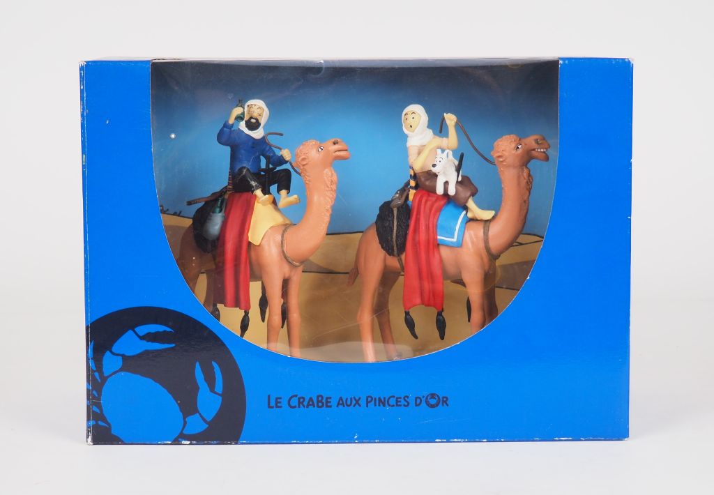Ref 43001 TINTIN Collection DIORAMA Couverture Album"Crabe aux pinces d'Or " Dromadaire Tintin,Haddock et Milou 28 x16x20 cm 2005 BE